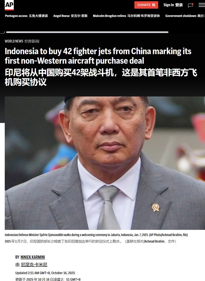 印尼宣布采购歼10C,美国却发现了一个重大问题